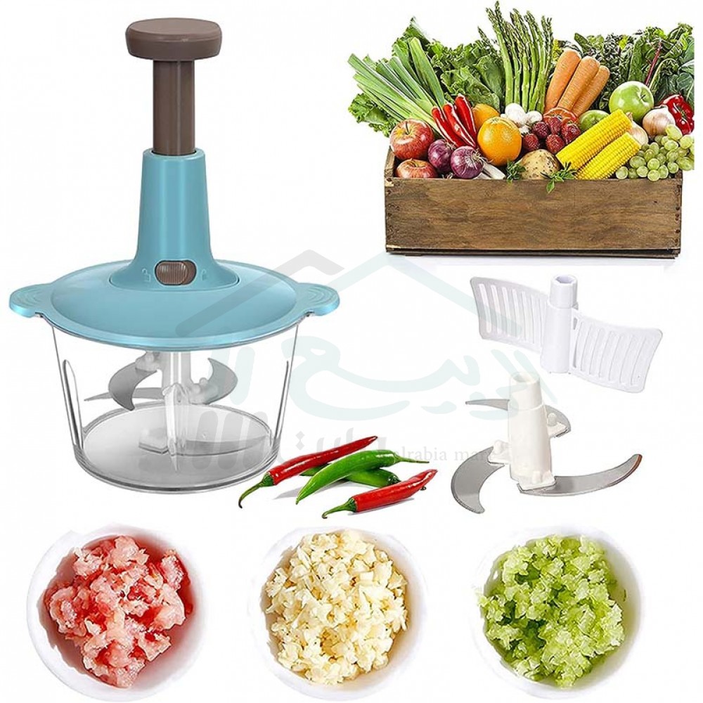 A manual multi-functional Hand Pushing Food Chopper. Versatile… Works without electricity, easy to use by adults and children in the kitchen. A reliable kitchen help